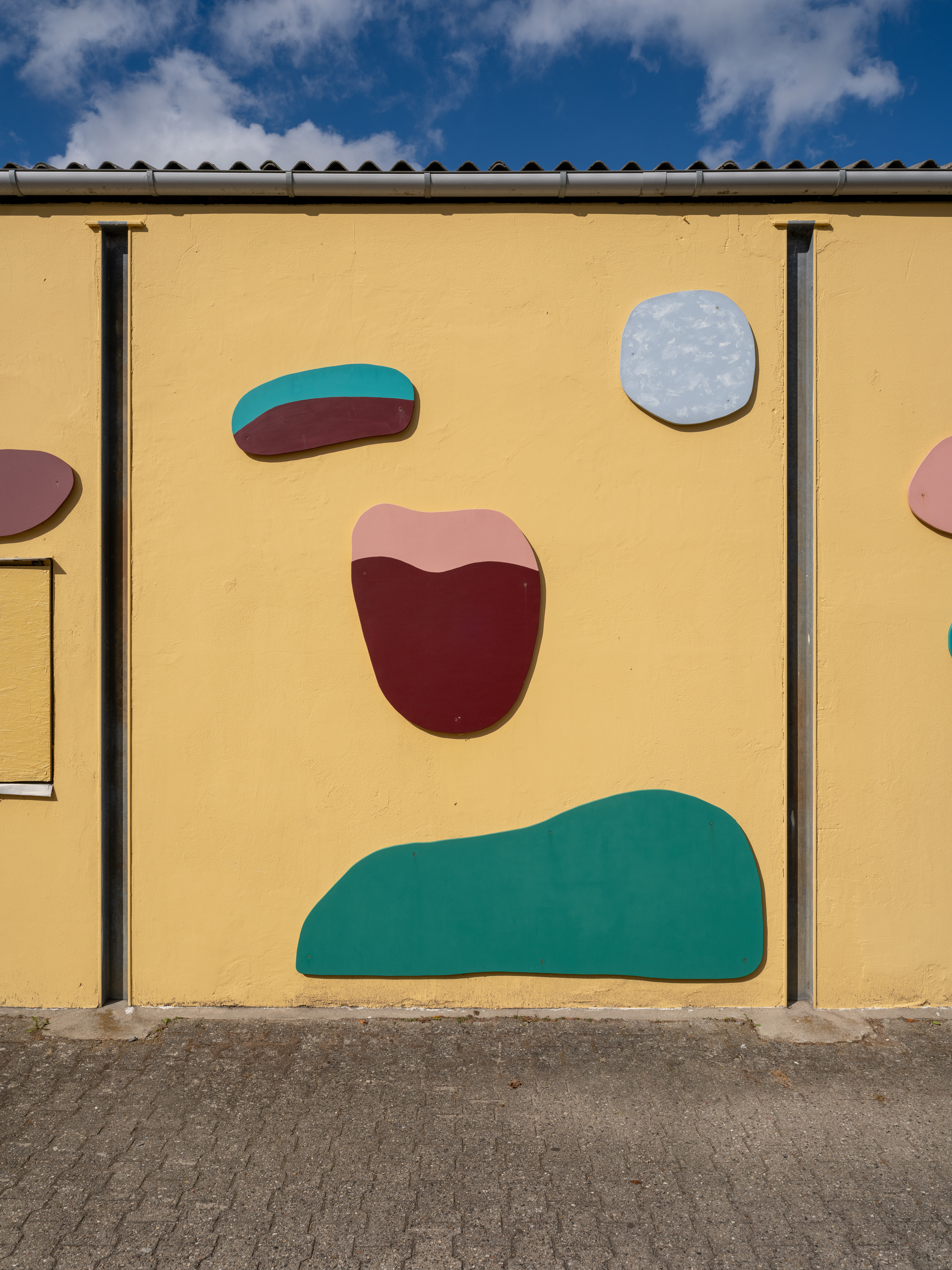 Hver plade er skåret ud i en organisk form og er fra 40 cm i diameter op til 240 cm i diameter for den største. De skal skrues fast på muren.